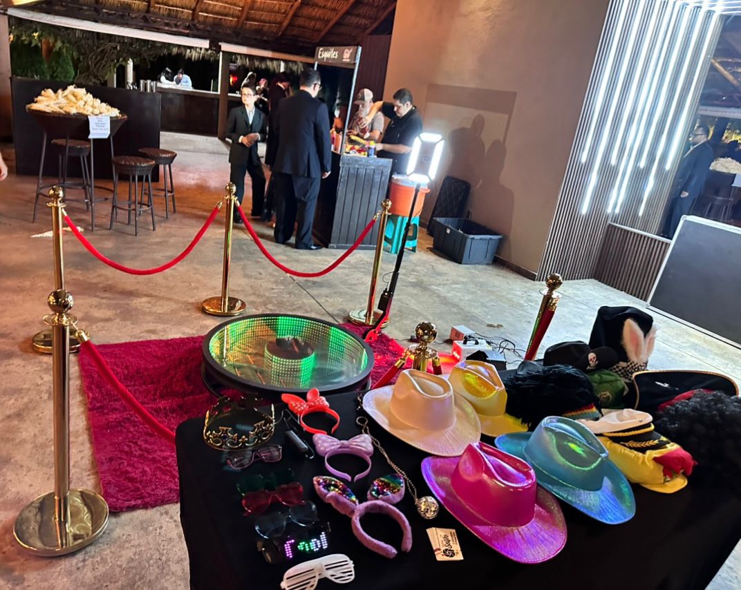 Haz que tu evento sea único y divertido. Ofrecemos cabinas fotográficas para capturar momentos especiales, cabina 360 para fotos panorámicas, espejo personalizado para un toque interactivo, brincolines blancos para la diversión de los niños y renta de unifilas para un acceso cómodo y organizado. ¡Todo lo que necesitas para una celebración memorable!